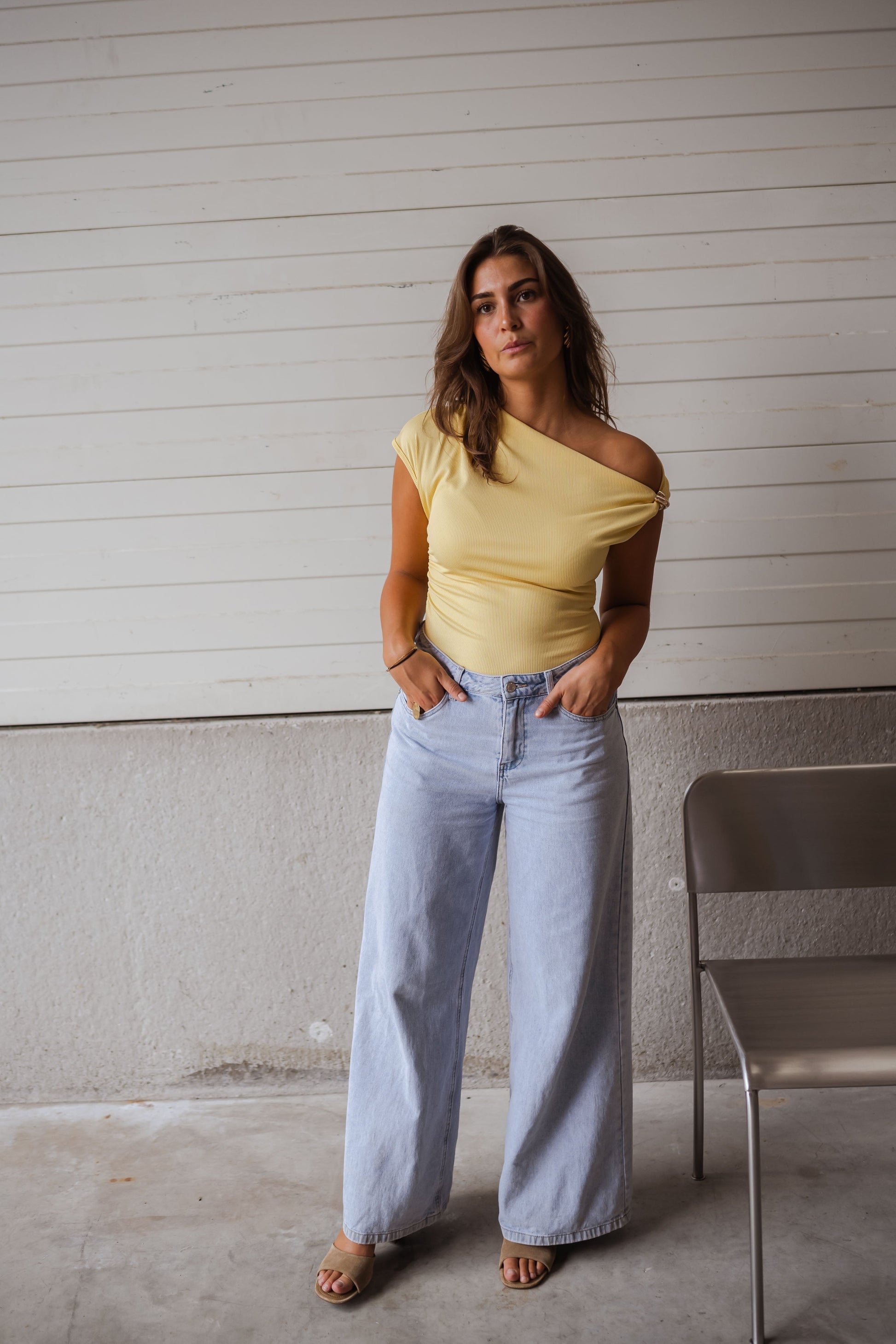 Miękko otulająca ciało, błyszcząca w słońcu biżuteria na ramieniu, kobiecy krój i asymetryczny kołnierzyk. Ludwika to koszulka, która przyciąga spojrzenia i zatrzymuje je na dłużej.