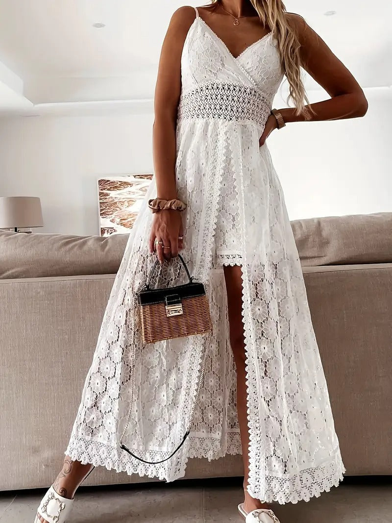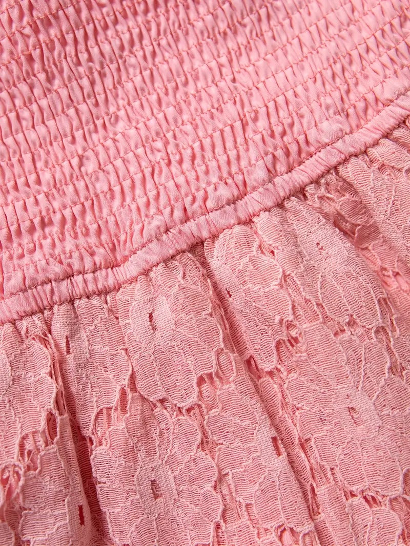 Misterne wykończenia z koronki delikatnie zdobią ramiona i dekolt, dodając romantycznego uroku i klasy. To detale, które natychmiast przyciągają wzrok bez krzyku, bez przesady.