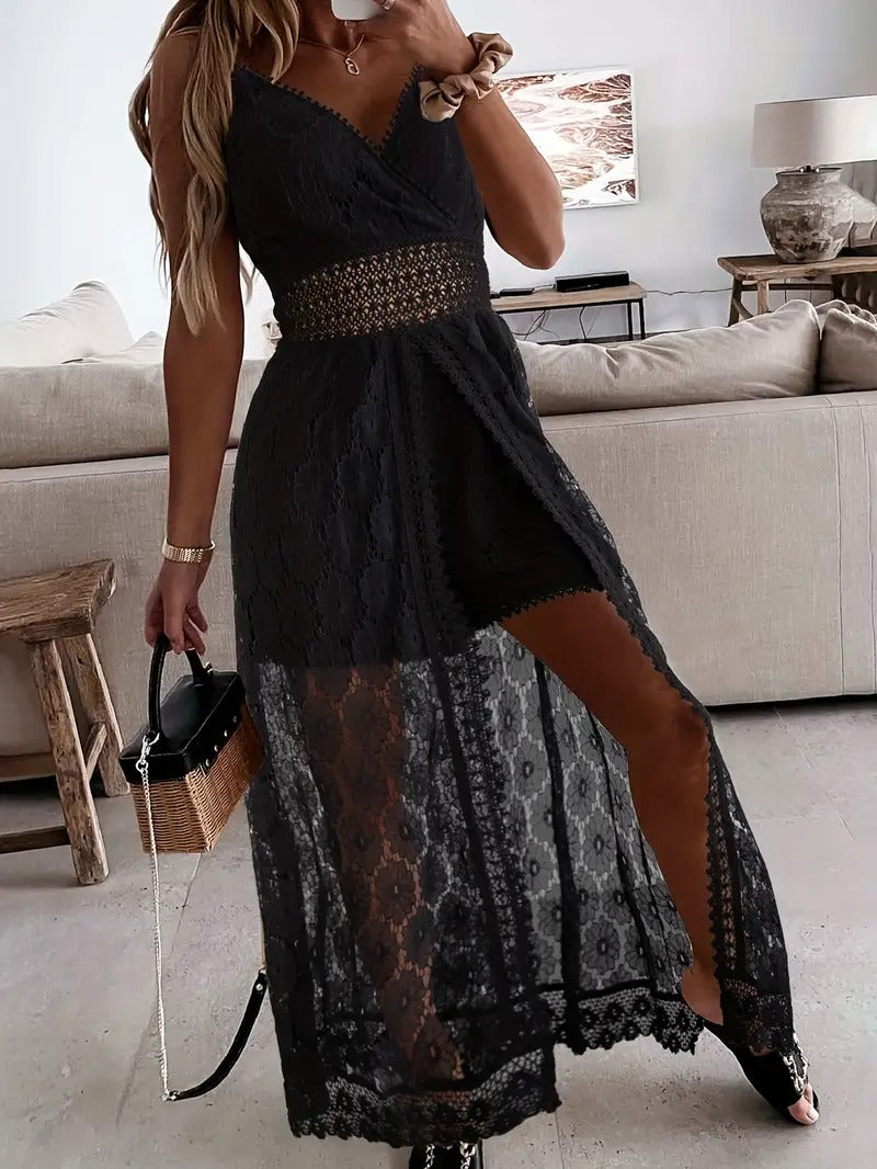 Wyobraź sobie siebie w delikatnie opływającym ciało kombinezonie, który łączy w sobie wyrafinowaną elegancję z codziennym komfortem. Głęboki dekolt, subtelna koronka i ponadczasowy krój sprawią, że będziesz wyglądać olśniewająco niezależnie od okazji.