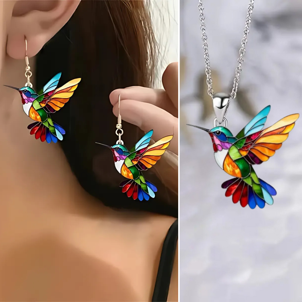 Dodaj swojemu wyglądowi blasku dzięki temu przepięknemu naszyjnikowi z kolorowym wisiorkiem w kształcie kolibra. Delikatny design i żywe barwy natychmiast dodadzą Twojej stylizacji radosnego, eleganckiego akcentu – idealny wybór, by wyróżnić się w subtelny sposób. Niezależnie od tego, czy stawiasz na casual, czy wybierasz się na wieczorne wyjście, ten naszyjnik dopełni Twój look.