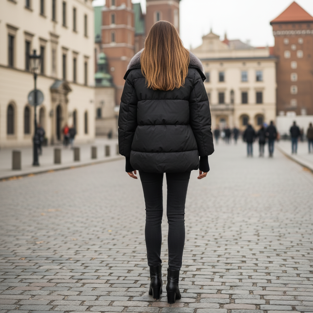 Ta wyjątkowa, pikowana kurtka z efektownym futrzanym kołnierzem to absolutny must-have na chłodne dni. Jej stylowy krój, ciepła podszewka i luksusowy wygląd sprawią, że poczujesz się elegancko i komfortowo w każdej sytuacji. Idealna na zimowe spacery, do pracy czy na spotkania w mieście.